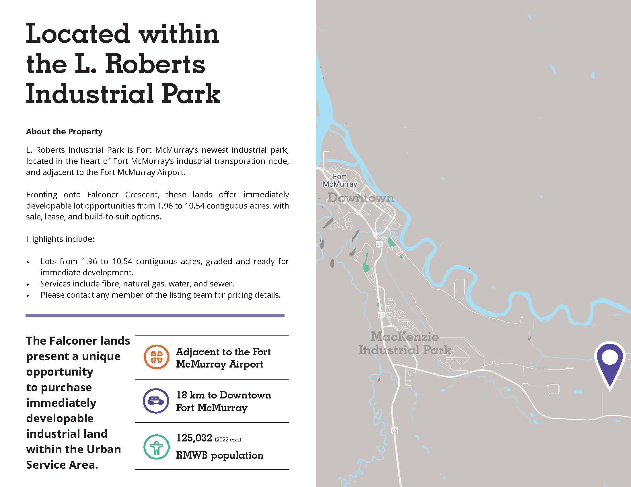• The only industrial land currently ready for development in Fort McMurray