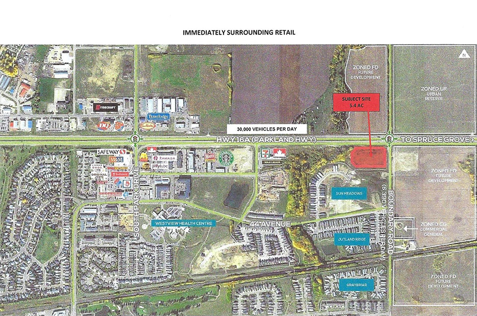 Stony Plain, Alberta — Phase I Completed 2021 Retail/gas bar fast food site:Circle K/EssoA&WPerks CoffeePizza 73Econo Liquor Corner of Highway 16 A and Veteran’s way stony_plain_surrounding_retail Image 6 of 6